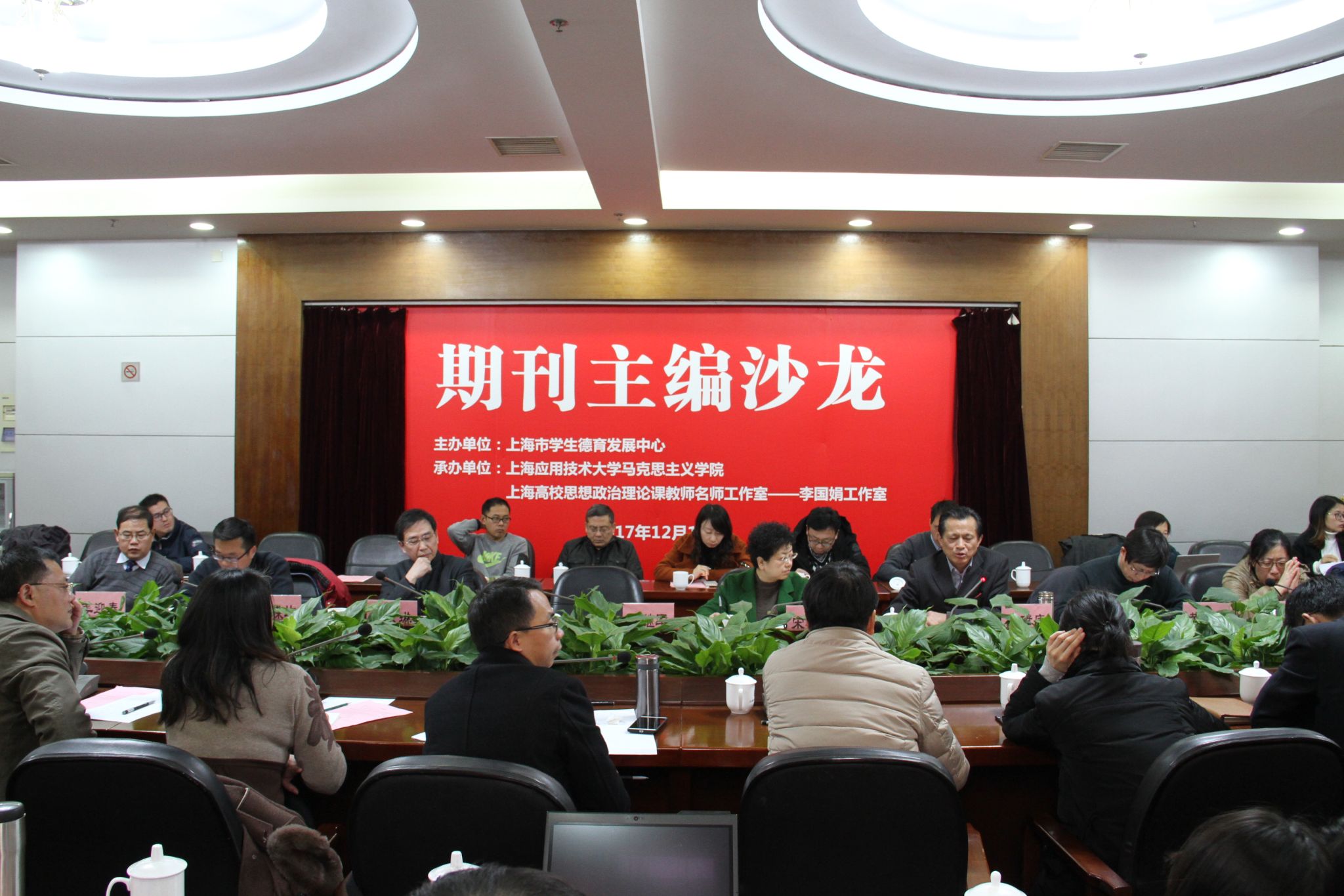 20171216日,由上海市学生德育发展中心主办,我校马克思主义学院、上海高校思政课名师工作室——李国娟工作室承办的“国内名刊主编沙龙”在徐汇校区举办。校党委副书记、纪委书记宋敏娟、上海市学生德育发展研究院(筹)书记、市学生德育发展中心副主任宗爱东出席会议并讲话。会议议程分为两个专场,上午专场会议由马克思主义学院院长李国娟主持,下午专场由马克思主义学院常务副院长邱杰主持。国内重要报纸名刊专家、上海市高校思政课拔尖人才、上海高校思政课部分骨干教师、我校马克思主义学院教师出席会议。