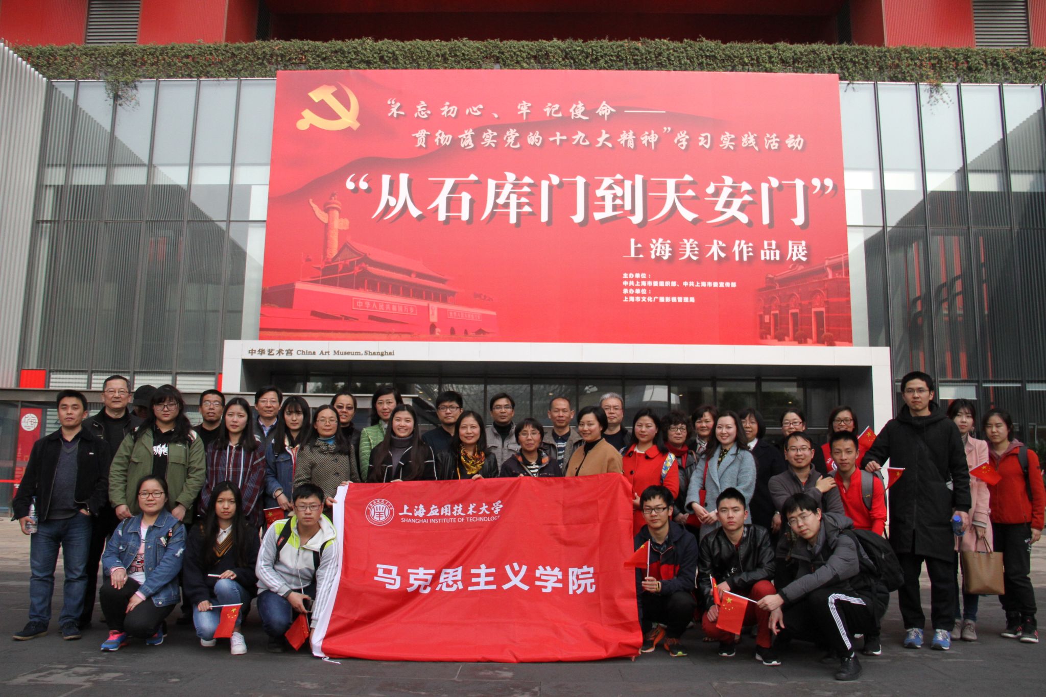 为深入学习宣传贯彻习近平新时代中国特色社会主义思想和党的十九大精神,3月23日下午,马克思主义学院直属党支部组织教师参观“从石库门到天安门”美术作品展,学院27位教师和知行学社骨干成员参加此次党性教育活动。