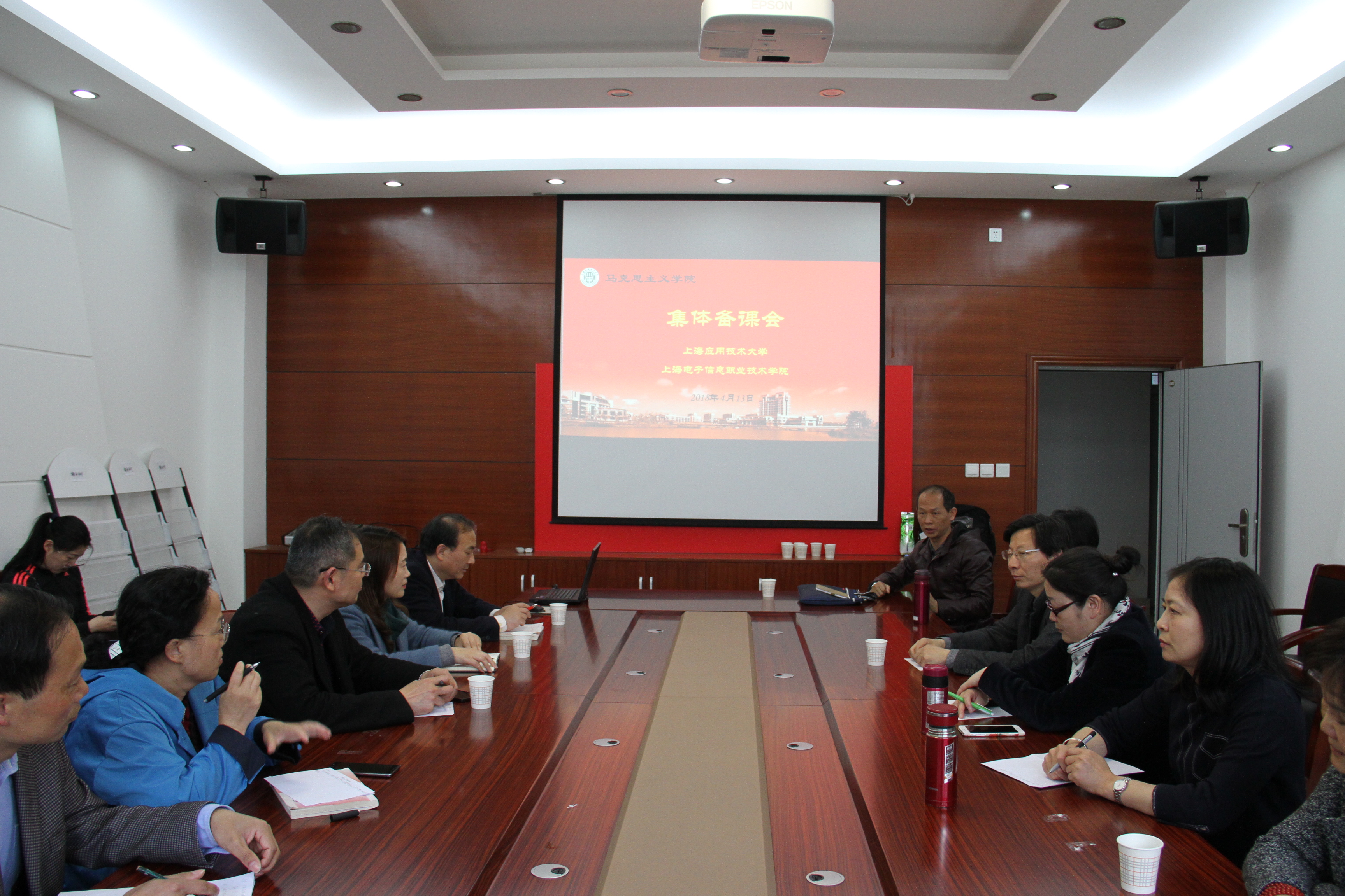 4月13日下午,上海电子信息职业技术学院马克思主义学院一行11人在院长茌良计的带领下到访我校马克思主义学院。两院教师开展了首次集体备课会,并围绕交流合作、结对共建和共同促进思想政治教育教学改革等方面展开了深入交流。马克思主义学院常务副院长邱杰热情接待了来访人员,《毛泽东思想和中国特色社会主义理论体系概论》课程教研室全体教师参加了此次集体备课会。