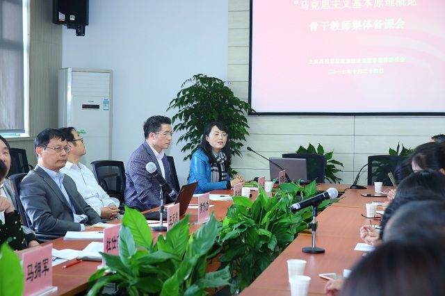 集体备课会由马克思主义学院院长李国娟主持,学院骨干教师与上海市思政课教学指导委《原理》课协作组10余名专家和部分高校骨干教师代表共同参加。李国娟表示,为了深入学习、理解、贯彻落实党的十九大精神,推进党的十九大精神与思想政治理论课教学的有机融合,必须高度重视、加强校际联合,深入开展理论研究。她同时围绕组织师资培训、开展教学展示和观摩、组建师生宣讲团、把“三进”活动和多媒体相结合并争取多出教学成果等方面,提出设想和建议。