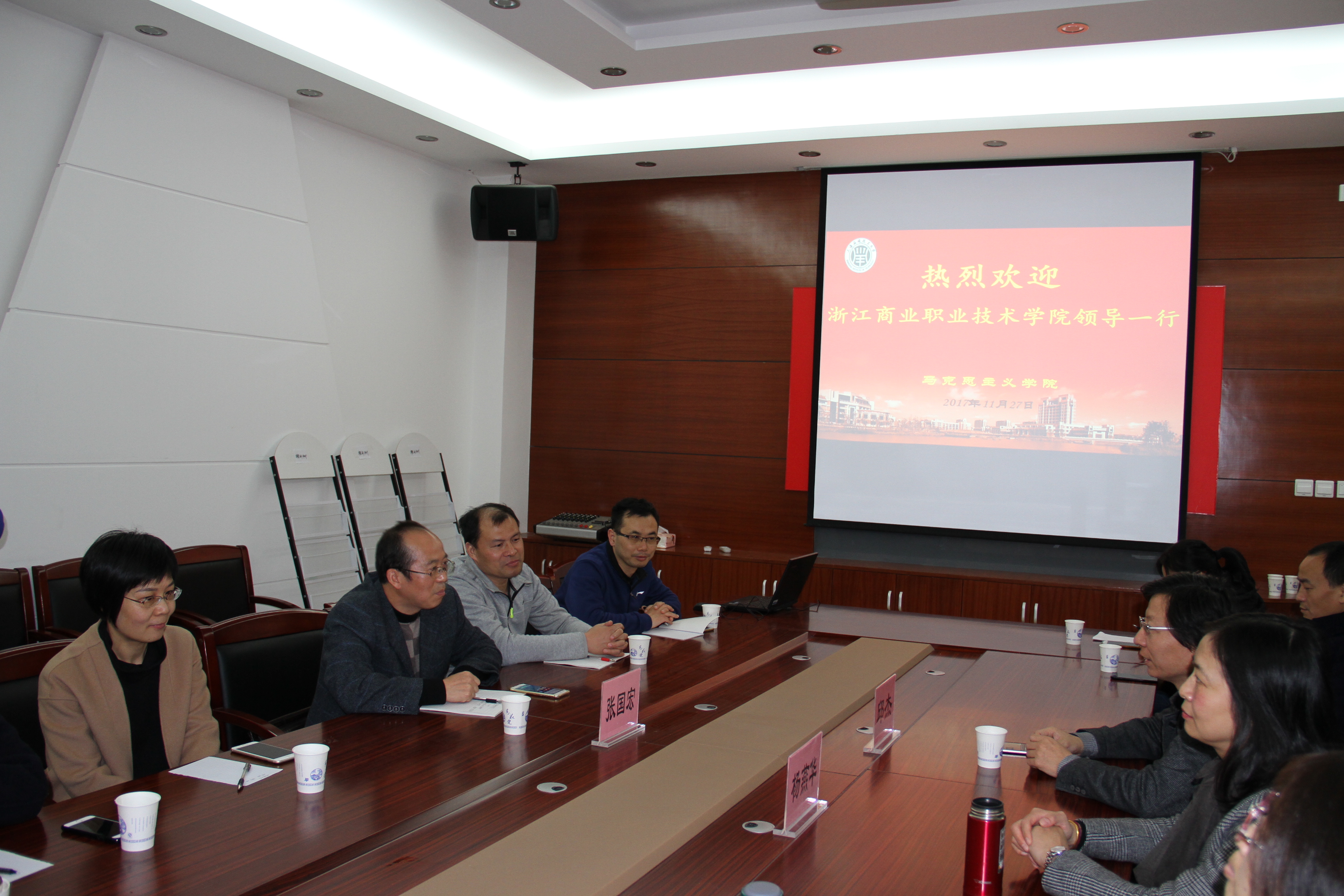 为进一步加强和改进高校思想政治理论课教育教学工作,积极推进十九大精神的“三进”工作,11月27日上午,浙江商业职业技术学院社科部主任张国宏一行来我院访问交流。马克思主义学院常务副院长邱杰、副书记杨燕华热情接待了张国宏等人一行,双方开展了广泛深入的学习和交流。