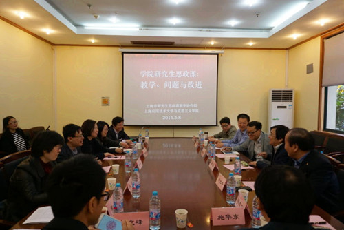 5月8日,上海市研究生思政课第六次工作研讨会在我校漕宝路校区举行。上海市教委德育发展中心副主任宗爱东出席会议并讲话。上海市研究生思政课教学协作组成员单位复旦大学、上海戏剧学院、上海政法学院、上海体育学院等几所高校的研究生思政课教学负责人参与会议。研讨会由复旦大学马克思主义学院教授肖巍主持。