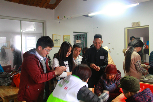 当日,师生们赶到睦邻点随即加入热闹纷呈的“包汤圆”环节。在阿姨奶奶们的亲切指导下试着动手包汤圆。临近中午,师生们将刚出锅热腾腾的汤圆送至村里几户有困难的老人家中。在这个春寒料峭、丝雨绵绵的日子将温暖传递开来。中午大家和老人们一起吃元宵。品尝元宵后,师生与老人们结对子,组团挑战当日的“猜灯谜”游戏。当天,我校一名来自非洲的留学生也加入到送温暖的志愿者中。他当天学做元宵、送元宵,到老人家中帮忙贴春联,互动中他还用中文为老人们深情献唱一曲《当你老了》,现场观众皆为之动容。当天整个睦邻点都沉浸在祥和热闹的节日气氛中。