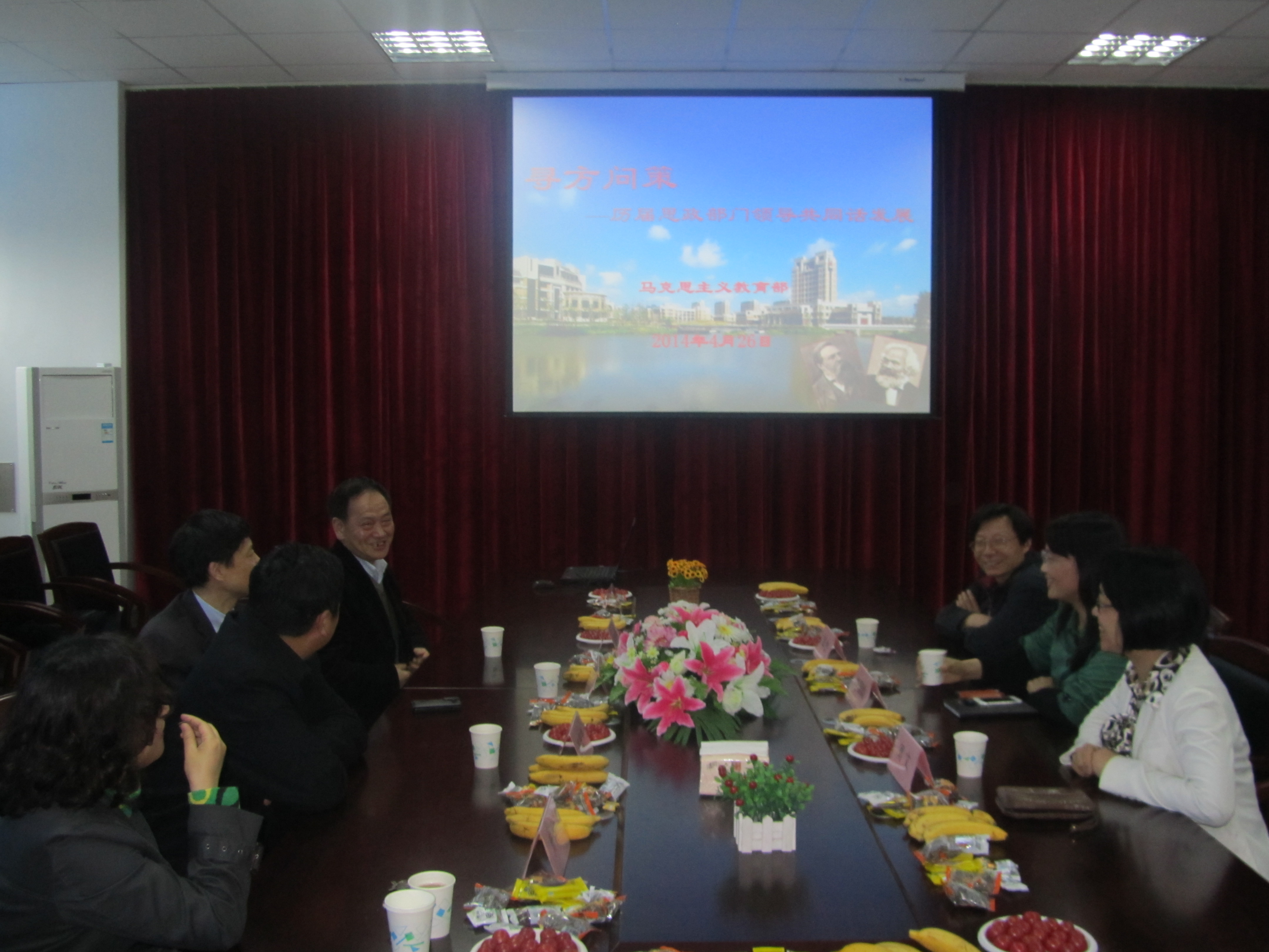 在全校喜庆我校60周年华诞之际,4月26日下午,马教部在第五学科楼B101室举办了“寻方问策 --历届思政领导共话部门发展”座谈会,会议邀请了我校历届思政部门领导共同谋划部门发展,出席座谈会的有上海市教委老干部处处长李坚真、上海对外经贸大学人文社科部冯国芳、我校人文思政学院原党总支书记朱贵平、马教部原副主任周妤。会议由马教部主任李国娟教授主持,联合党总支书记周文致欢迎辞。
