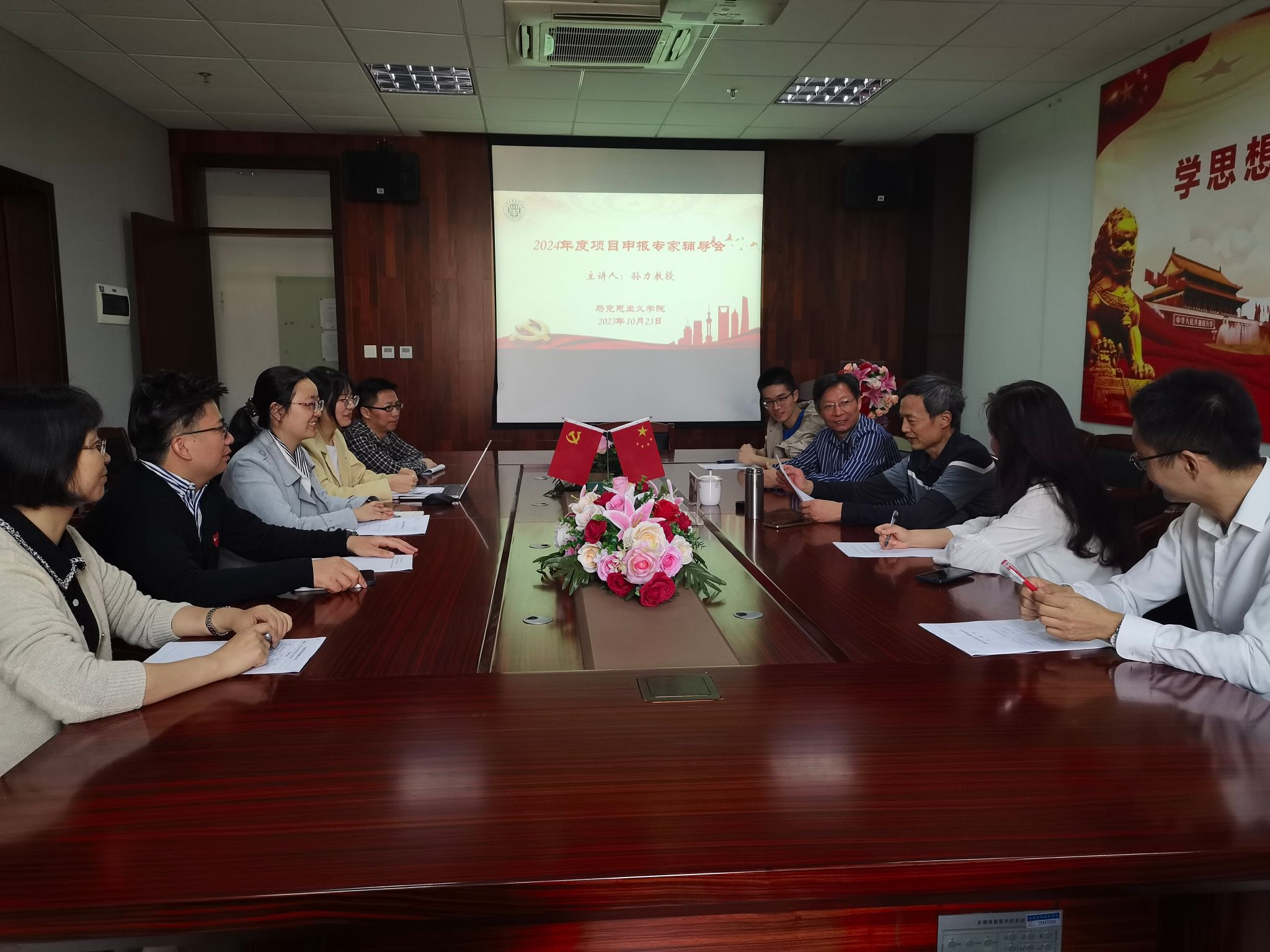 为了进一步提高申报质量和水平,准确把握国家社科基金项目的选题精神和论证规范,马院于10月23日在奉贤校区A419会议室举办了2024年度国家社科基金项目等项目申报辅导会。我校特聘教授、国防大学政治学院博士生导师孙力应邀作全天候坐堂医式专家辅导,当日累计辅导20余位老师。活动由学院常务副院长邱杰主持。